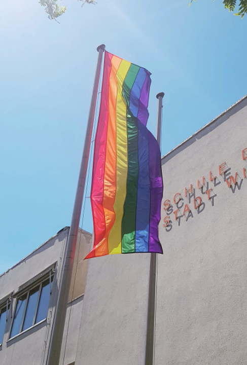 Seit nunmehr vier Jahren nimmt unsere Schule, die Modulare Mittelstufe Aspern, stolz am Programm "FLAGincluded" teil. Jedes Jahr im Juni hissen wir die Regenbogenflagge vor der Schule, um ein sichtbares Zeichen für Vielfalt und Akzeptanz zu setzen und unsere Unterstützung für die LGBTIQA+-Community zu zeigen.