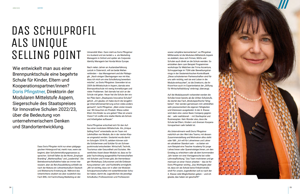 Wie entwickelt man aus einer Brennpunktschule eine begehrte Schule für Kinder, Eltern und Kooperationspartner/innen? Direktorin Doris Pfingstner erzählt dem OEAD Magazin über die Bedeutung von unternehmerischem Denken und Standortentwicklung.