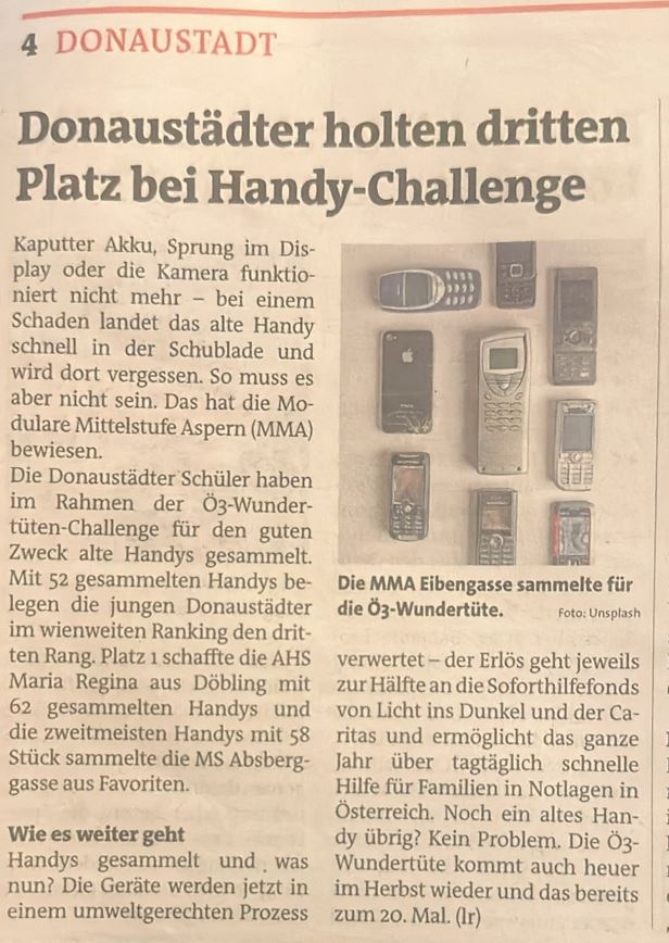 Im Rahmen der Challenge wurden 52 alte Handys für den guten Zweck gesammelt und bei der Challenge eingereicht.