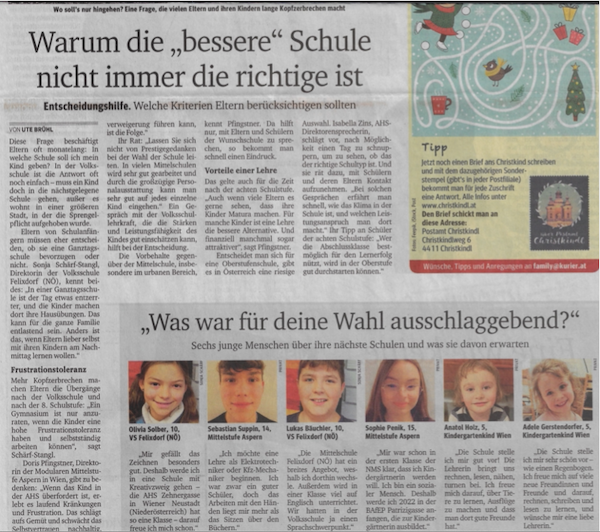 Jahreswechsel ist ein typischer Zeitpunkt, um sich gute Vorsätze vorzunehmen. Der KURIER wollte von unseren Schüler*innen wissen, welche Vorhaben sie für 2023 haben. Lesen Sie hier, was Damaris, Sebastijan und Leonie an Plänen für 2023 haben.